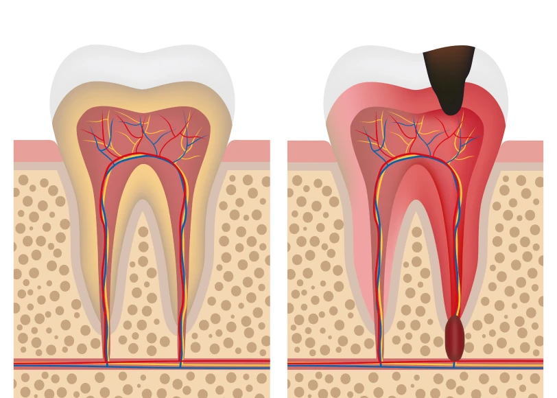 La carie profonde reste la cause la plus fréquente. Toutefois, d’autres facteurs peuvent également compromettre l’état de la pulpe :