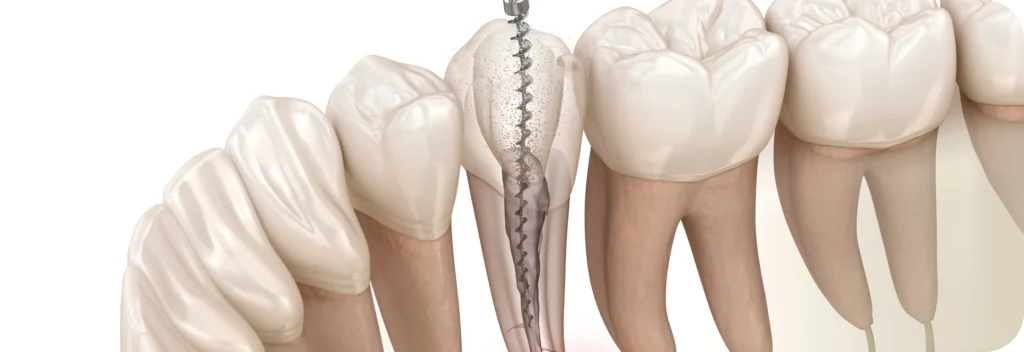 À l’aide d’une fraise, le praticien crée un accès au centre de la dent. Cela lui permet de visualiser les canaux et de retirer les tissus infectés. Ensuite, il nettoie l’intérieur avec précision.