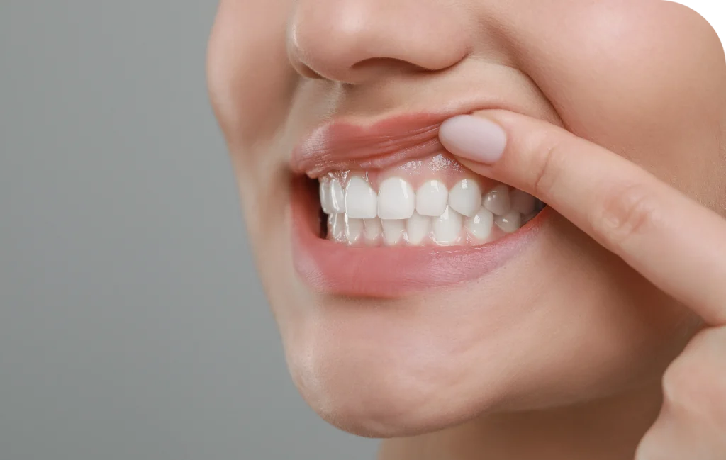 • Un recul des gencives laissant apparaître les racines.